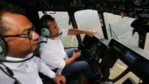 El Presidente de la República, Ollanta Humala Tasso, inspeccionó esta tarde las acciones desplegadas por el Ejecutivo frente al desborde del río Rímac, ocurrido en el kilómetro 79 de la Carretera Central, en la provincia de Huarochirí.