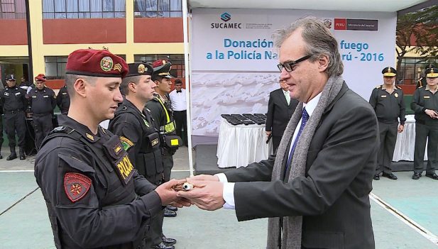 A través de una ceremonia protocolar, la Superintendencia Nacional de Control de Servicios de Seguridad, Armas, Municiones y Explosivos de Uso Civil (SUCAMEC) realizó la entrega de un lote de 191 pistolas a los miembros de la Policía Nacional con el fin de fortalecer la seguridad en la ciudad de Lima. Cabe señalar que la donación del armamento se llevó a cabo en la sede de la División de Emergencia, ubicada en el distrito de La Victoria.