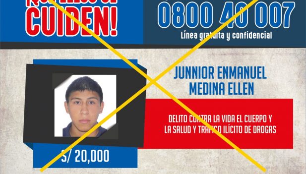 La cifra de prófugos capturados a través del Sistema de Recompensas impulsado por el Ministerio del Interior (Mininter) ascendió a 38 requisitoriados gracias a la captura del acusado por tráfico ilícito de drogas, Junnior Enmanuel Medina Ellen (23), quien fue detenido el pasado viernes durante un operativo policial en el distrito limeño de La Victoria.